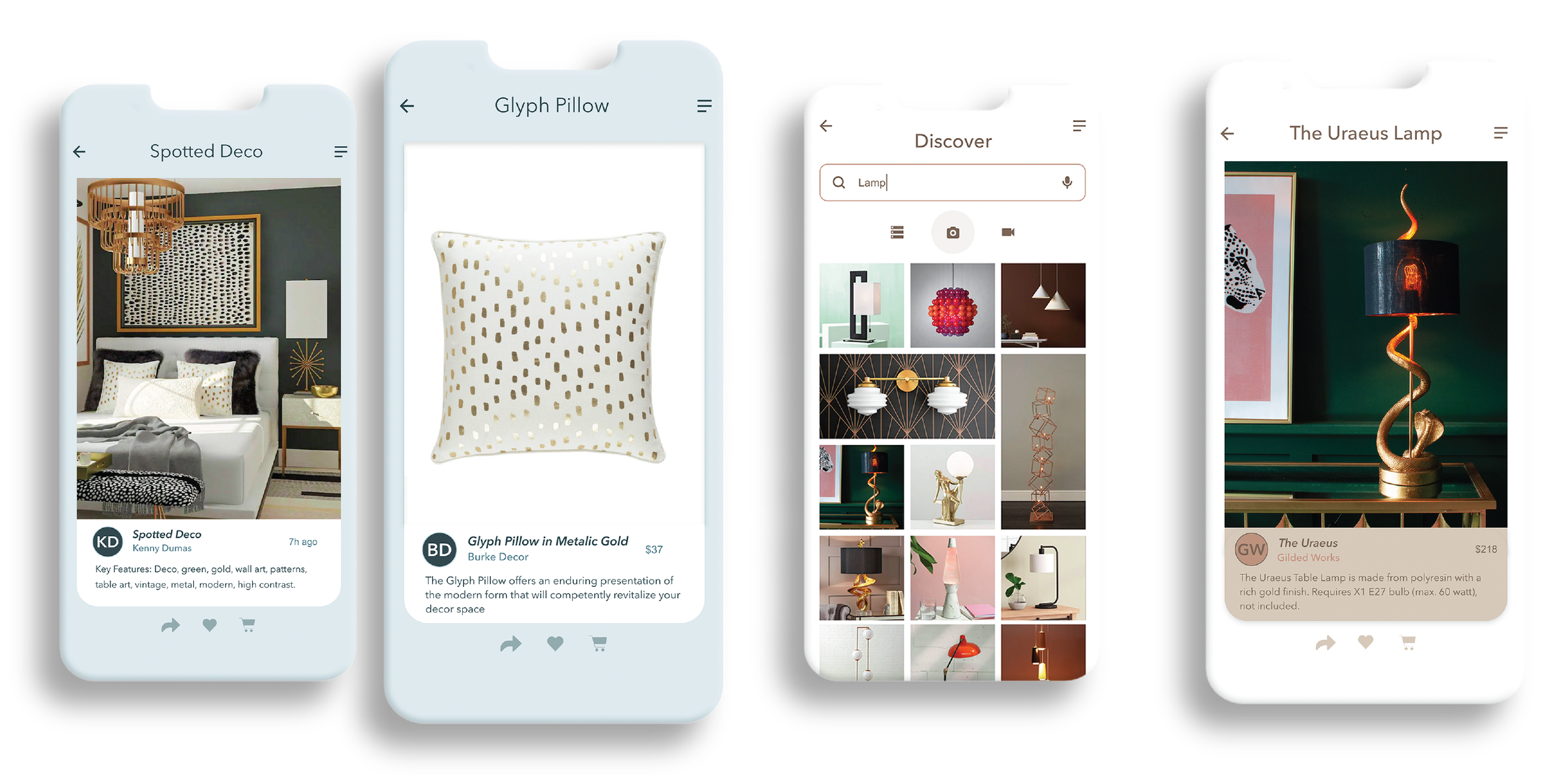 Arterior offers users a wide selection of stylized rooms that have been curated by established interior designers. From these rooms, featured items can be purchased directly through our app. Another resource for users is our discover page; here users can search up any specific item, style, designer, or or room and save or shop (ex; lamps> The Uraues Table Lamp by Gilded Works.)