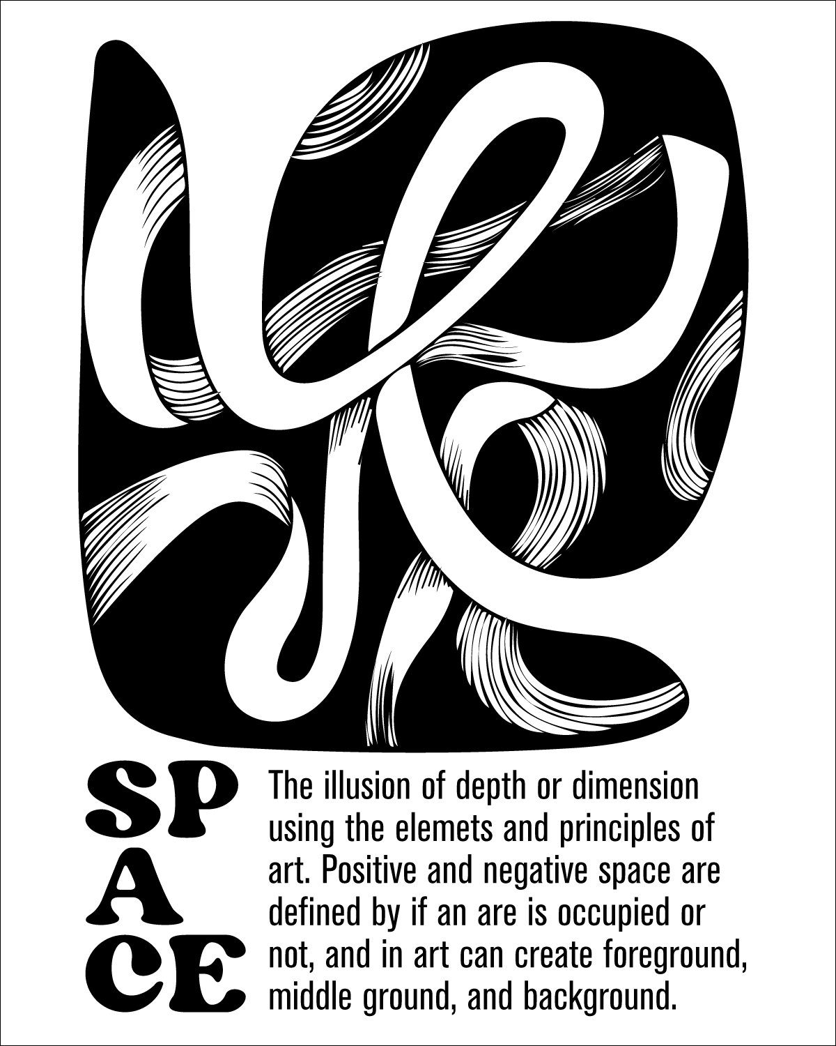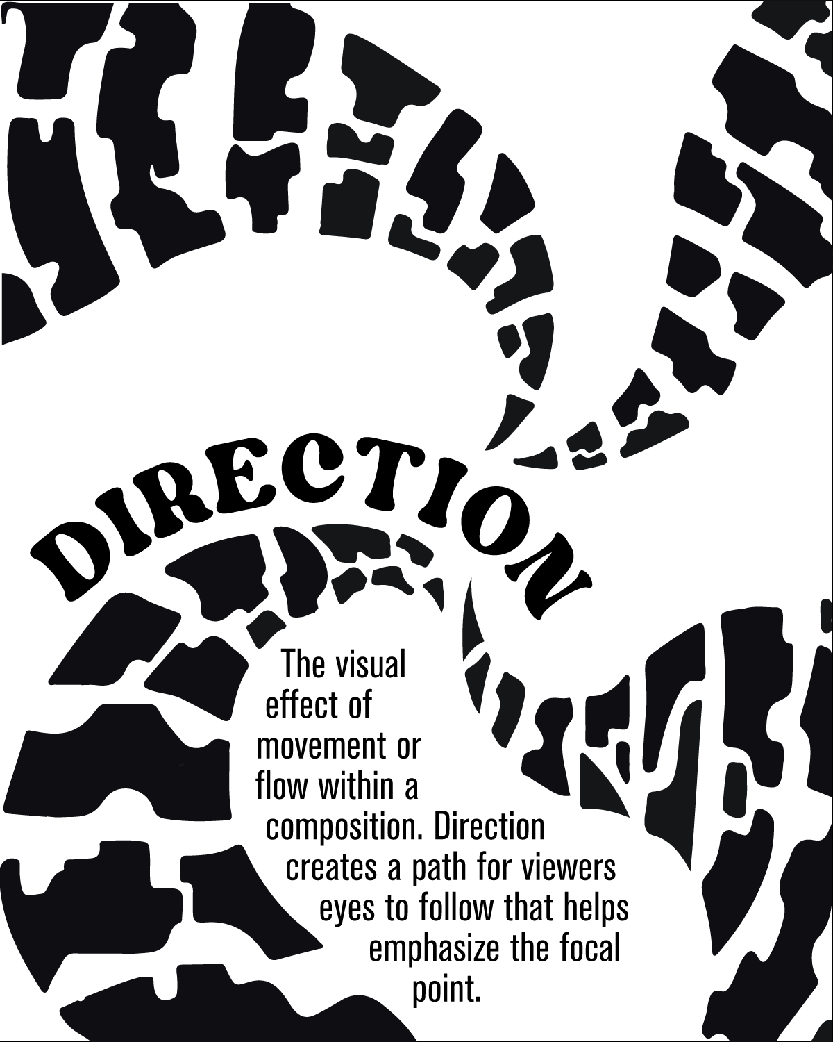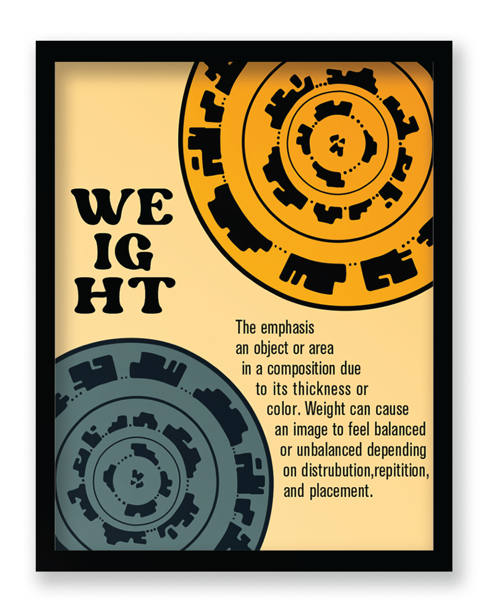 For this project, I designed a series of eight posters, six of which are dedicated to visually illustrating one of the core principles of design: form, space, weight, texture, direction, and scale. The goal was to create a cohesive set that not only educates but also serves as a visually striking representation of these fundamental design concepts.