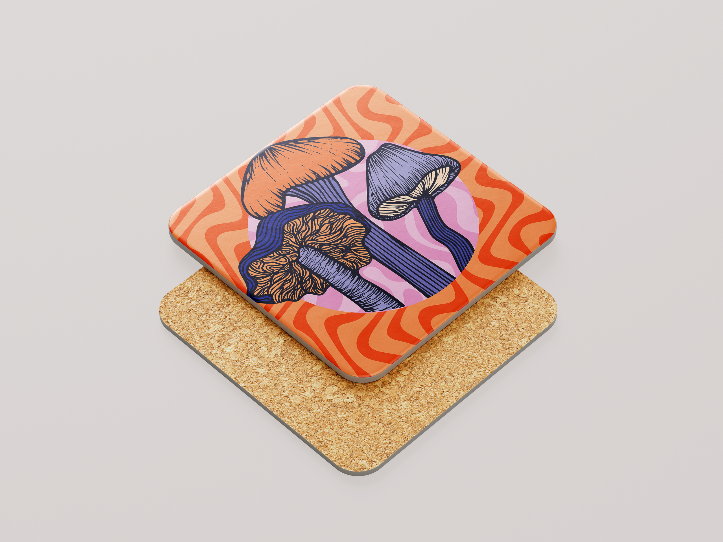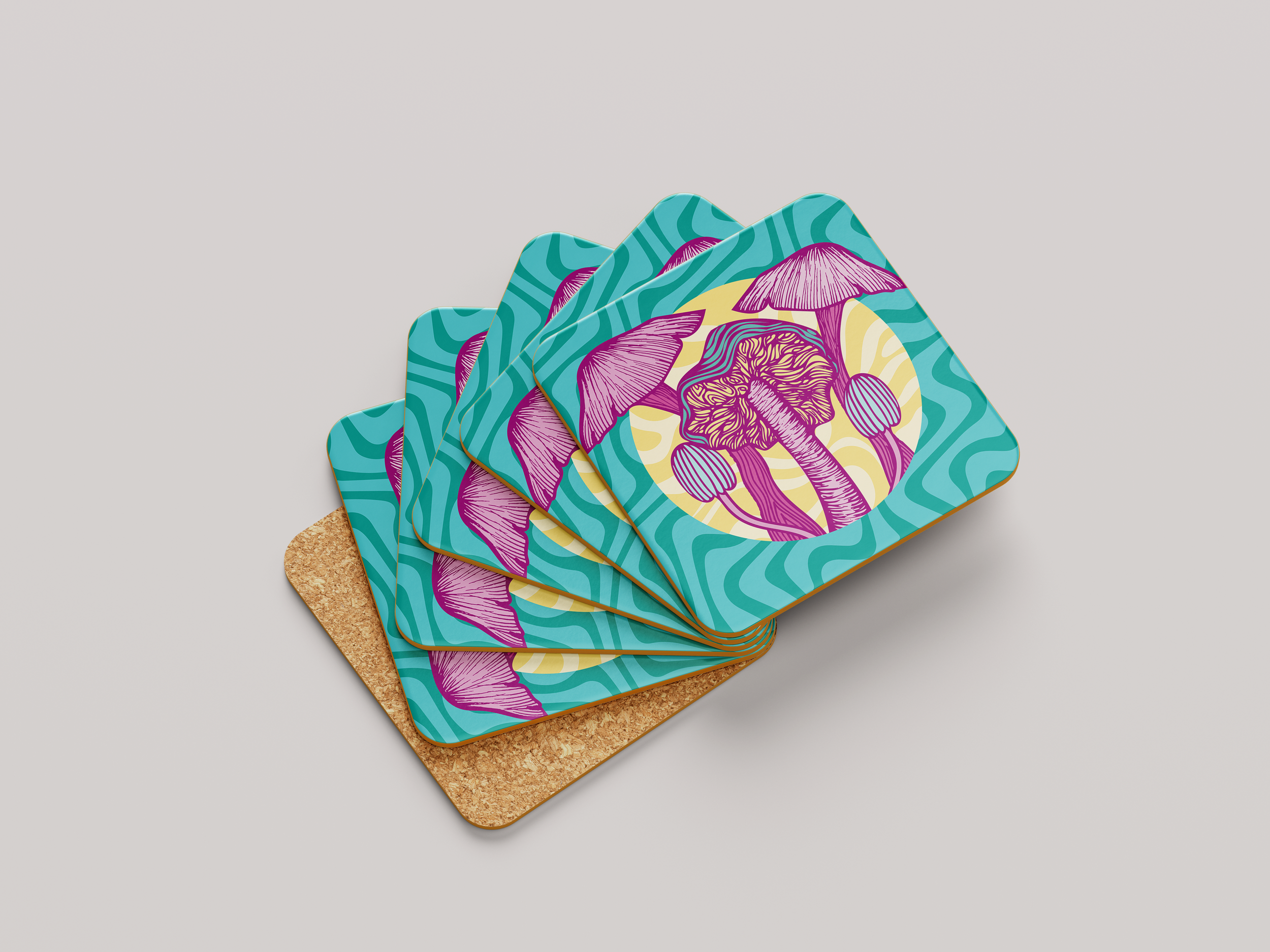 This project involved designing a set of coasters, each featuring a unique mushroom illustration with its own distinct color palette. The goal was to create a collection that celebrates the diversity and beauty of mushrooms while offering visually striking designs that stand out individually and as a cohesive set.